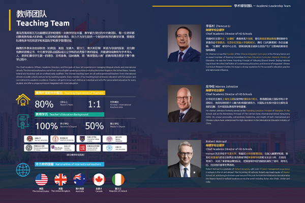 赫德的外教来自全球各地(如英国、美国、加拿大、爱尔兰、澳大利亚等)英语为母语的国家,且均拥有教师资格证书。中方教学团队由国际或公立学校的优秀骨干教师组成,并邀请特级教师为学术带头人老师们秉持学生的理念, 言传身教、因材施教,将“教育塑造人格”的教育理念贯穿于整个教学过程中。