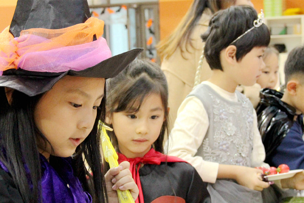 11月9日,对于青岛赫德小学部的孩子们来说,周五下午放学回家的诱惑,比不过晚上这场属于自己的舞会。拿出早早备好的衣物,在老师的帮助下顺利变身,瞧!白雪公主、小巫师、变形金刚、超人、钢铁侠、海盗船长……一个个小精灵出现了。
