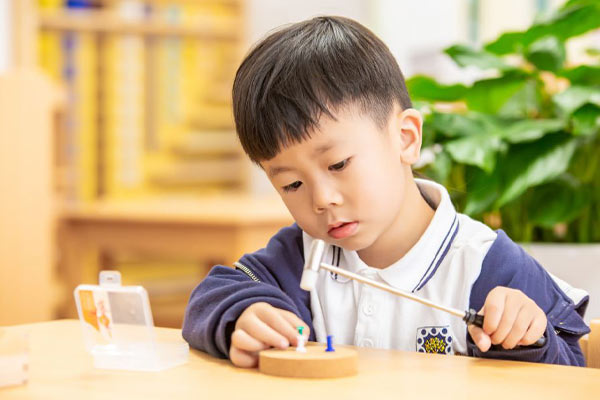 孩子们在蒙氏班级的五大领域:日常生活区域、感官区域、语言区域、数学区域和科学文化区域中,利用每个区域多样的蒙氏教具,在享受的“工作”中,不知不觉获取了将来步入正常知识学习所应有的认知和积淀。
